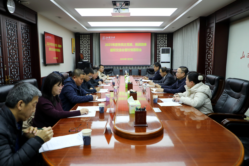 1月7日下午,我校在太谷校区召开各民主党派、统战团体履职交流会暨校情通报会。校党委书记廖允成、党委副书记李卫祥出席,校党委常委、宣传统战部部长李文来主持,各民主党派和统战团体负责人参加会议。