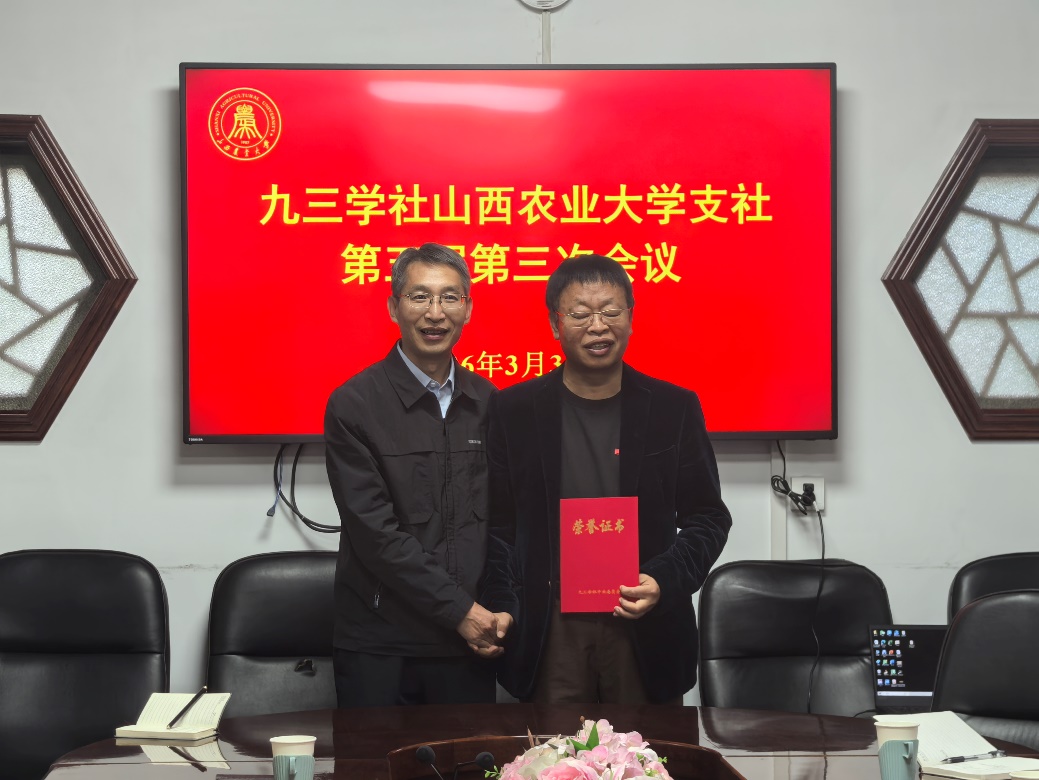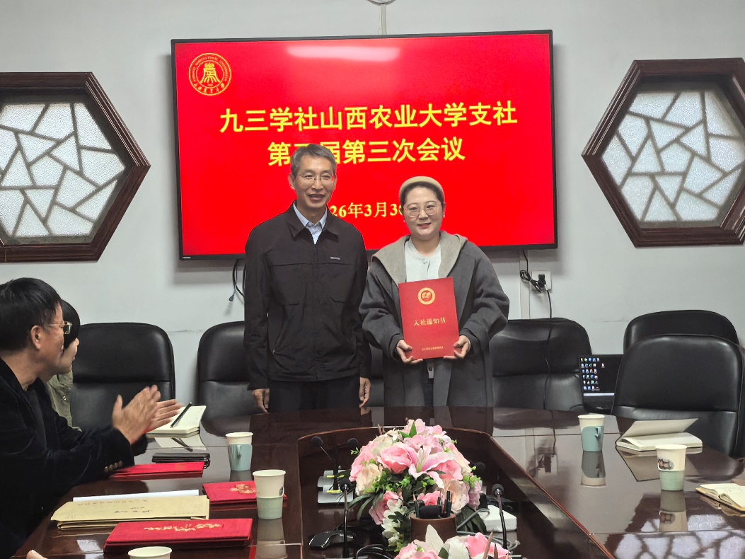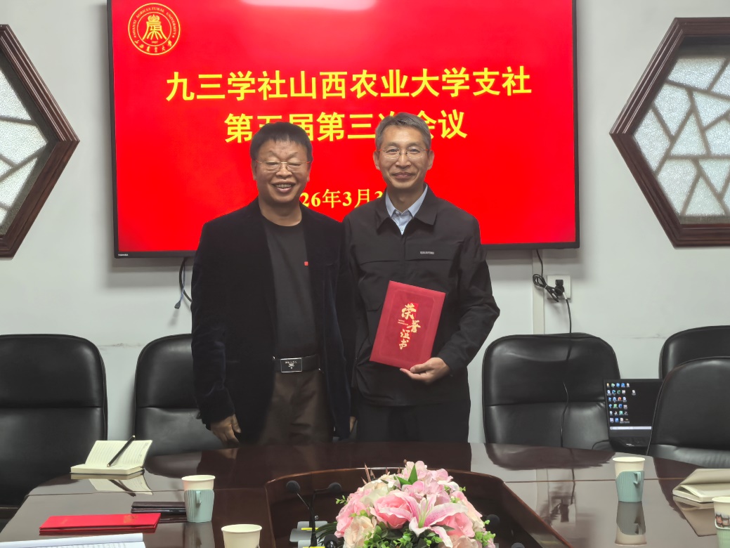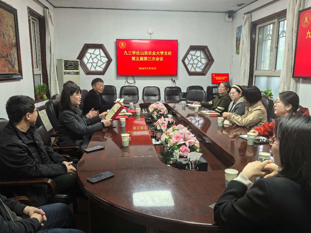 3月30日上午,九三学社农大支社在太谷校区召开第五届三次会议,传达九三学社山西省委员会第十一届五次会议精神,总结九三学社农大支社2025年工作成绩,谋划2026年重点工作,为新社员颁发入社通知书。