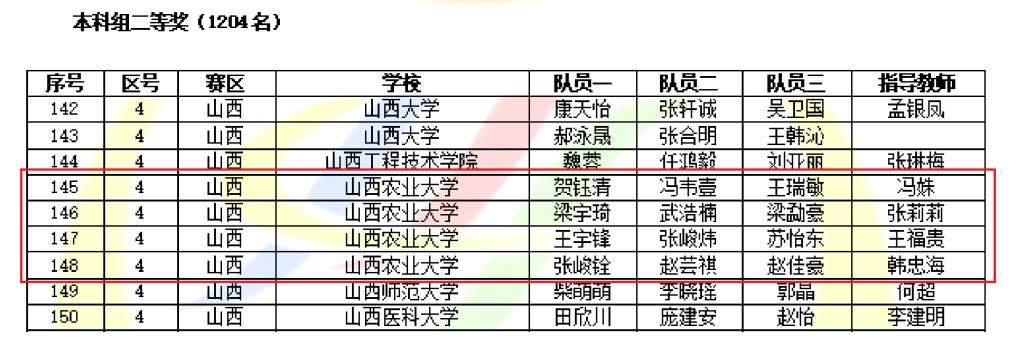 本次大赛中,我校共组建了44支队伍参赛,在指导老师的引领下,同学们经过问题分析、数学建模、模型求解、论文写作等攻关,持续三个昼夜,最终成功提交参赛作品43件。经山西赛区组委会的一轮评审和全国组委会二轮评审,我校4支队伍的参赛作品获得全国二等奖,竞赛成绩在2016年获得3项全国二等奖的基础上取得了新的突破。这项荣誉是全体师生共同努力的结果,可喜的成绩将激励同学们更多地尝试用数学方法解决实际问题,激发学生学习数学的热情,同时也鞭策数学系教师在日常的教学活动中融入更丰富、恰当的数学建模案例,为国家培养更多具有创新精神和实践能力的优秀人才。