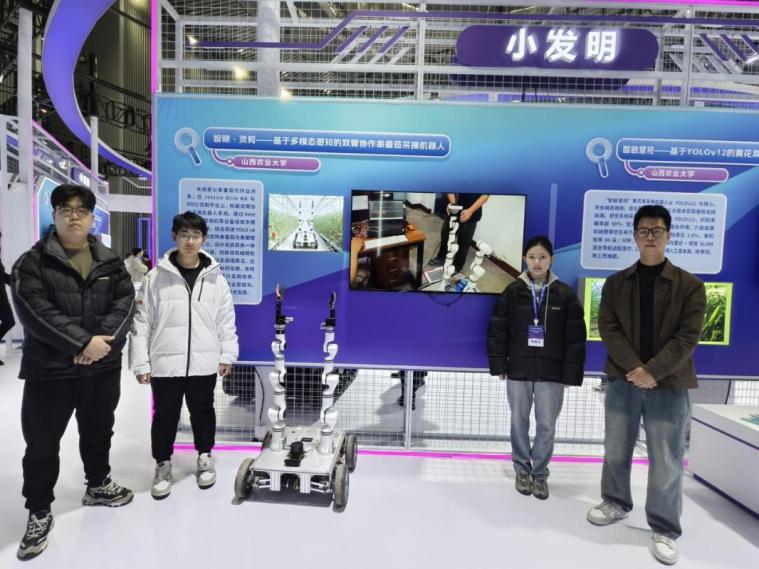 本次成果展以“五小凝众智创新赢未来”为主题,运用智能化、数字化、可视化等现代展示手段,为观展者带来了一场科技创新的智慧盛宴。在本次展览中,我校展出的3个项目均聚焦于智慧农业装备领域,针对农业生产中的实际痛点,提出了具有针对性的解决方案,充分展示了我校学子精湛的专业技能和投身乡村振兴的崇高社会责任感。