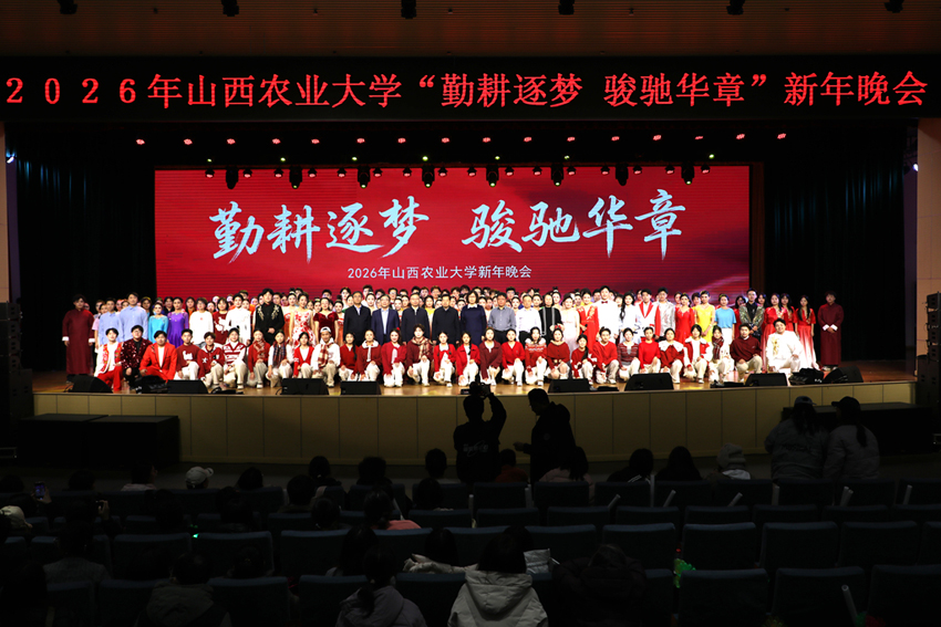 勤耕逐梦展宏图,骏驰华章颂丰年,在新的一年即将到来之际,12月30日晚7点,2026年山西农业大学“勤耕逐梦 骏驰华章”新年晚会在行远堂隆重举行。校党委副书记、校(院)长张强,校党委副书记薛建武、李卫祥,校党委常委、副校(院)长孔照胜、李捷,全校各部门各单位的领导及师生代表近千人齐聚一堂,在精彩纷呈的节目中共同迎接新年的到来,奏响学校发展的崭新乐章。