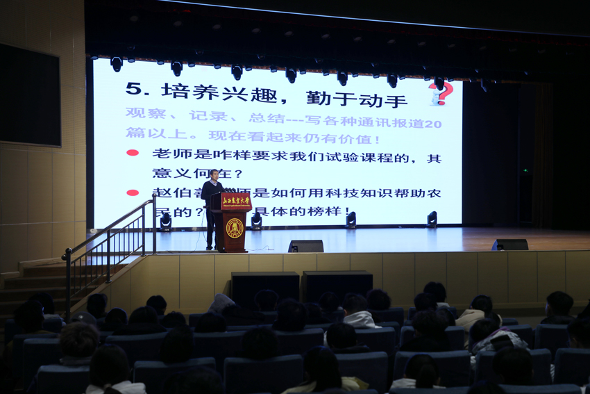 最后,徐明岗院士鼓励同学们树立梦想、坚定信念,积极学习,追求幸福,为实现强国梦贡献力量。